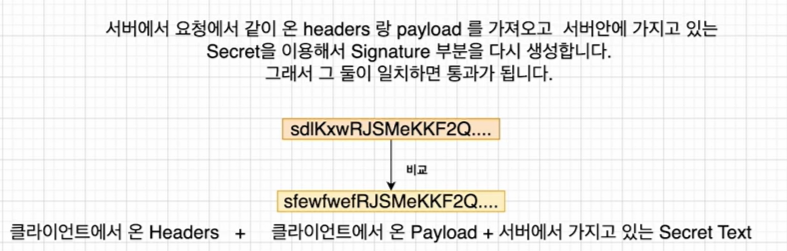 클라이언트가 보낸 서명 파트와 서버가 직접 만들어낸 서명 파트가 일치하면,